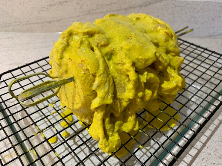 Giving the marinade at least 12 hours to work is essential. It gives more time to get the moisture and flavour into the chicken. The use of an electronic thermometer so you can put the probe inside the chicken and have the device outside telling you the temperature is essential. I use one with an alarm feature that means it buzzes when it has reached the right temperature.