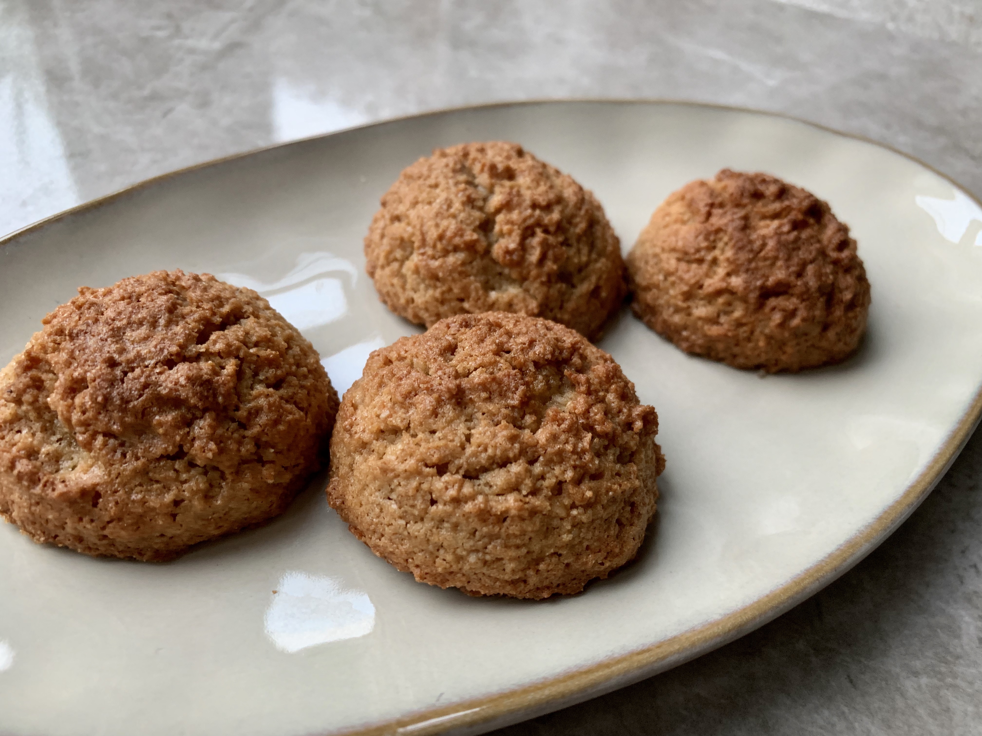Amaretti are delicate Italian biscuits. The only issue is that some people are not so fond of the strong amaretto flavour. I found that bourbon or whiskey can work well in these biscuits and switching from white sugar to brown sugar makes them richer. I like to “adulterate” these further by adding cinnamon, horrifying any Italian. I think these are pretty great.