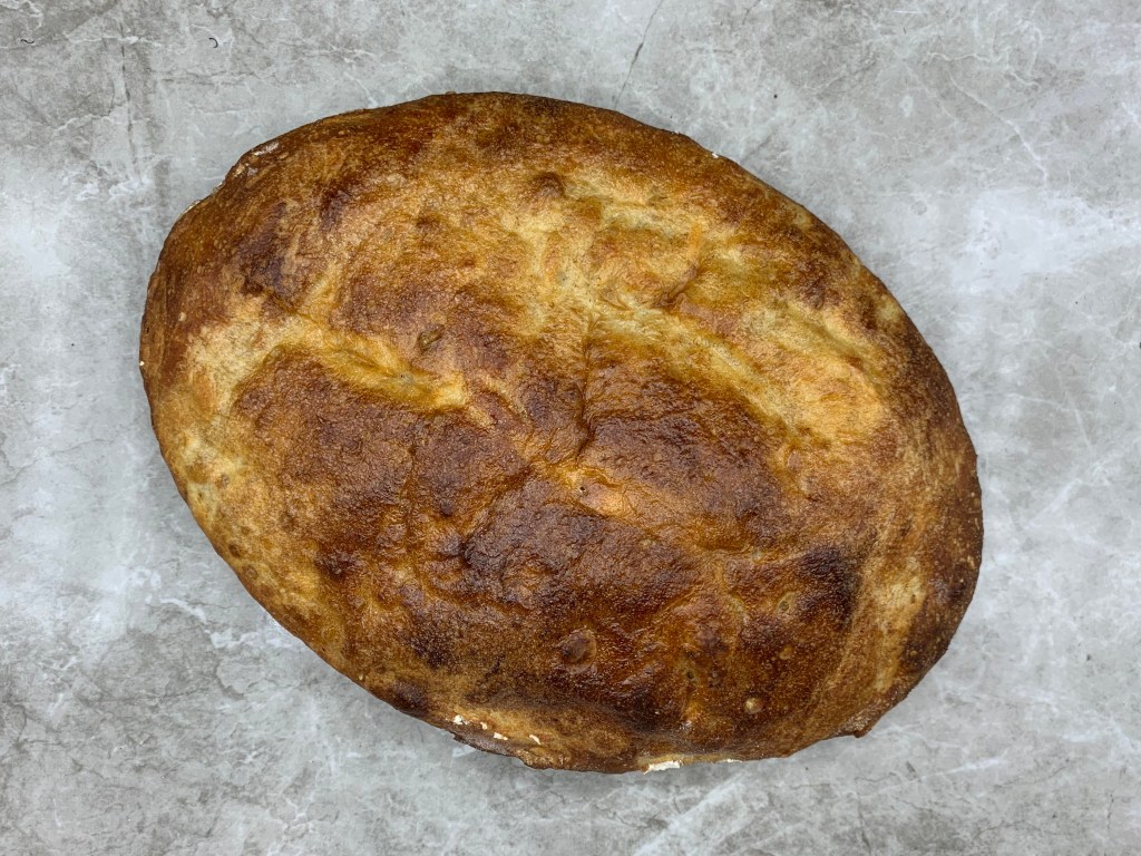 6. Remove from the oven when able run a knife around the outside of the pot to loosen the bread.