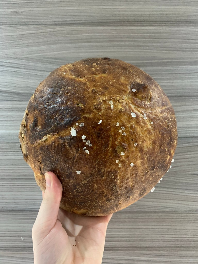 7. Pop the bread out of the pot and allow to cool before slicing.