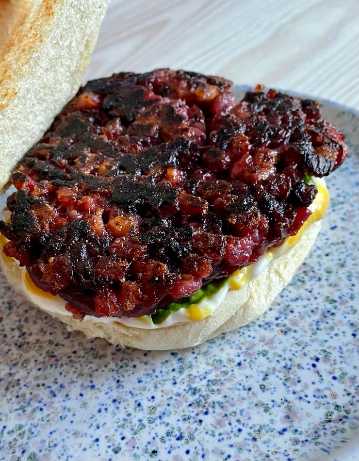 This has taken months to come together with multiple failed batches and changes. Beetroot, along with the barley, works to give a good “meaty” texture. Underlying unami from the mushrooms and the turbo charge from the miso helps give a “meaty” taste also whilst still clearly being a veggie burger. The patty mixture works well as a smash burger being well bound by the potato starch.
