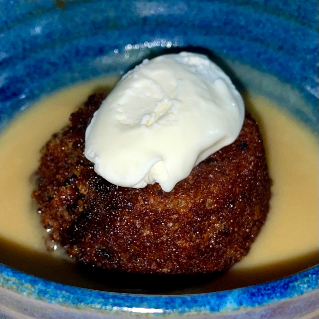 This is a more grown up sticky toffee pudding. Dark and almost malty sponge contrasted with a light rum butterscotch sauce. Interestingly the coffee note is not overpowering but helps create a bitter note to balance the sweet sauce. The sponge can be made beforehand and frozen. Make sure you make the sauce on the day.